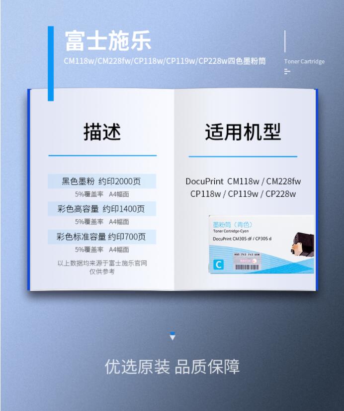 富士施樂 CT202258 粉盒 cm118w原裝墨粉cm228w/CP118w/228fw粉盒 CT202258青色(1400頁)